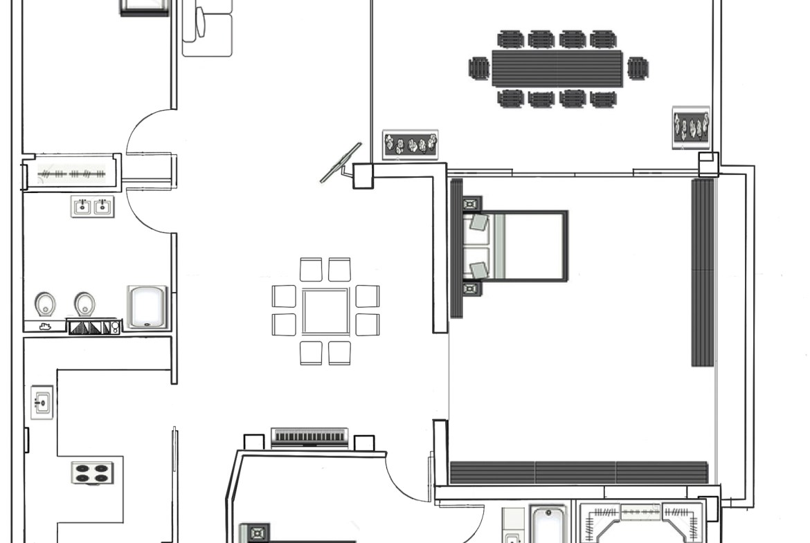 Mieszkanie zostało odnowione z użyciem najwyższej jakości materiałów, zapewniając przyjemne i luksusowe wnętrze. Składa się z trzech sypialni, dwóch łazienek, przestronnego salonu z dostępem do wspaniałego tarasu z markizami oraz oddzielnej kuchni. Dodatkowo, jest dostosowane do potrzeb osób o ograniczonej sprawności ruchowej, co sprawia, że jest to idealne miejsce dla każdej rodziny.